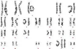 Chromosome aneuploidies such as XXXYY syndrome are diagnosed through the process of karyotyping, or chromosome testing.[12] One recorded case of the disorder was diagnosed prenatally via amniocentesis, but did not survive to birth; all other reported cases of XXXYY syndrome were diagnosed postnatally.[2][13] Sex chromosome aneuploidies can only be diagnosed via conclusive genetic testing, not on the basis of clinical examination, due to their nonspecific phenotypes. Such disorders are underdiagnosed, and when diagnosis does occur, it is often late.[1][3]