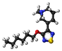- ^ a b c Sauerberg P, Olesen PH, Nielsen S, Treppendahl S, Sheardown MJ, Honoré T, et al. (June 1992). "Novel functional M1 selective muscarinic agonists. Synthesis and structure-activity relationships of 3-(1,2,5-thiadiazolyl)-1,2,5,6-tetrahydro-1-methylpyridines". Journal of Medicinal Chemistry. 35 (12): 2274–2283. doi:10.1021/jm00090a019. PMID 1613751.