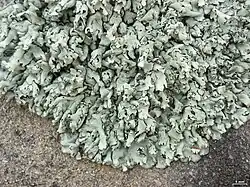 Grows to around 6–12 cm in diameter with irregular lobate lobes. The upper surface of the lichen has rounded lobed tips with yellow-green or blueish green areas on the surface.[3]