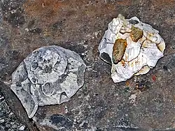 There are currently 16 known species in the genus, Xenophora. Fossils of Xenophora crispa are found in marine strata of Pliocene of Italy and Spain (age range: from 3.6 to 2.588 million years ago.).[1] The Pliocene stage is the last stage of the Tertiary period before the Quaternary ice ages. This stage was the final of global cooling. Fossils of the genus Xenophora are found in marine strata from Cretaceous to Quaternary (age range : 89.3 to 0.012 million years). Although Xenophora crispa are found specifically in Italy and in Spain, fossils from the genus Xenophora can be found all over the world.