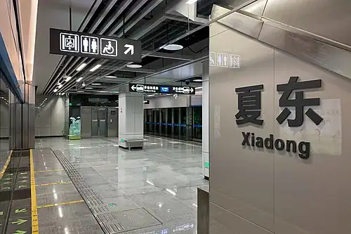 Xiadong station (simplified Chinese: 夏东站; traditional Chinese: 夏東站; pinyin: Xiàdōng Zhàn; Jyutping: Haa6dung1 Zaam6) is a light metro station on Nanhai Tram Line 1 of Foshan Metro, located in Foshan's Nanhai District. It opened on 18 August 2021.[2]