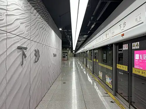 Xiasha[1] (Chinese: 下沙; pinyin: Xiàshā), formerly known as West Heli Road (simplified Chinese: 鹤立西路; traditional Chinese: 鶴立西路; pinyin: Hèlì Xīlù), is a Shanghai Metro station located on Line 18 in Pudong, Shanghai. Located at the intersection of West Heli Road and Hunan Highway, the station opened on 26 December 2020.[2] It is part of the first section of Line 18 to become operational, a southern segment of phase one of the line which consists of eight stations between Yuqiao and Hangtou.[3][4]