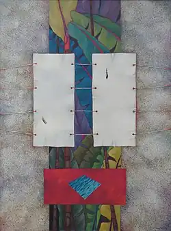 - Pasan huyendo pájaros: acrylic painting on canvas (196 × 114 cm).