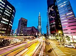 Xinyi Road (Chinese: 信義路; pinyin: Xìnyì Lù) is an arterial road in Taipei, Taiwan, connecting Zhongzheng District with Xinyi District in Taipei, Taiwan. Its western terminus is at the East Gate of Taipei's former city wall, at the intersection of Zhongshan Road, Ketagalan Boulevard, and Renai Road. Near the eastern terminus, there is an interchange with the Xinyi Expressway, which connects Xinyi Road with National Freeway 3 in Wenshan District.