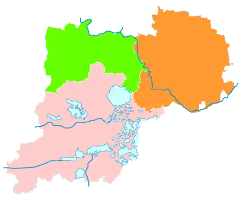 Xiong'an is well-endowed in water features and resources, which is comparatively unusual for north China.[6]: 132 The area is located in the Daqing River system of the Haihe River Basin. The average river network density is 0.12–0.23 km per 1 km2.[9] Baiyang Lake, northern China's largest freshwater lake, is also included within the new area.[11] The project aims to support restoration of the wetlands surrounding the lake.[12]