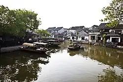 Xitang (Chinese: 西塘; pinyin: Xītáng; lit. 'West Pond'), formerly known as Xietang (Chinese: 斜塘; lit. 'Oblique Pond'), Pingtang (Chinese: 平塘; lit. 'Flat Pond') and Xutang (Chinese: 胥塘; lit. 'Xu Pond'), is a historic town in Jiashan County, Zhejiang, China. It borders Luxu Town in the north, Yaozhuang Town in the east, Ganyao Town in the southeast, and Tianning Town and Town in the west. As of the 2016 census it had a population of 57,400 and an area of 83.61-square-kilometre (32.28 sq mi).[1] Xitang is a water town crisscrossed by nine rivers. The town stretches across eight sections, linked by old-fashioned stone bridges. In the older parts of town, the buildings are set along the banks of the canals, which serve as the main transportation thoroughfares in the area.