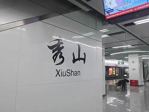 Xiushan Station (Chinese: 秀山站; pinyin: Xìushān zhàn; Fuzhounese: [seu˥ laŋ˥]) is a metro station of Line 1 of the Fuzhou Metro. It is located on the intersection of Xiufeng Road and Shanqian South Road in Jin'an District, Fuzhou, Fujian, China. It started operation on January 6, 2017.[1]