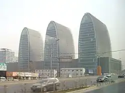 The 2nd Ring Road links with Xizhimen Outer Street, which has recently been transformed into a city express road, linking the western 2nd Ring Road via Beijing Zoo to the 3rd Ring Road. A triple-arched highrise building is a noticeable landmark at the intersection.