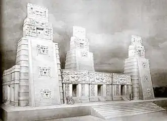 Structure I is the most notable structure in this region, due to its atypical three-tower construction instead of the usual two.[8] This structure includes three towers, roof combs, steep stairways, and non-functional doors.[9] It is hypothesized that it may have been constructed in an effort to mimic the style of pyramid-temples found in Tikal and elsewhere.[10]