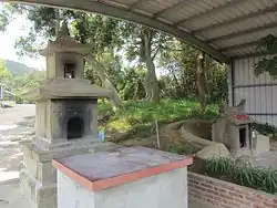 Jingshengting (Chinese: 敬聖亭; pinyin: Jìngshèngtíng) is a sandstone furnace to burn joss paper. The structure is approximately three meters tall composed of a foundation, a hole for joss paper, and a shrine to Cangjie on top. This type of structure is known as a "cherish words tower" (惜字塔, xi zi ta) which were built because in the past, people considered it a privilege to be educated.[2]