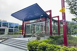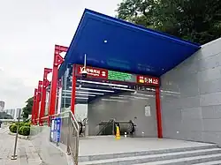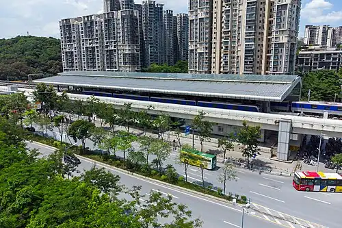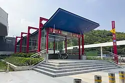 Xunfenggang Station (simplified Chinese: 浔峰岗站; traditional Chinese: 潯峰崗站) is an interchange station between Line 6 and Line 12 of the Guangzhou Metro, and serves as the western terminus for both lines.[1] The Line 6 station started operations on 28 December 2013.[2] It is located at the south of the area of Xunfenggang (浔峰岗), A1 Road, Jinshazhou, Baiyun District.[3] The terminus approaches near Lishui, Nanhai District, Foshan, which is just over the hill next to the station.[4] Line 12 opened at this station on 29 June 2025, thus becoming an interchange station.