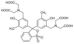 2,2′,2′′,2′′′-{(1,1-Dioxo-2,1λ6-benzoxathiole-3,3(1H)-diyl)bis[(6-hydroxy-5-methyl-3,1-phenylene)methylenenitrilo]}tetraacetic acid | |