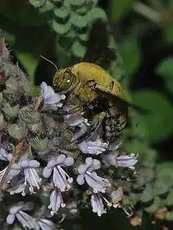 - ^ a b Somanathan, Hema; Saryan, Preeti; Balamurali, G. (2019). "Foraging strategies and physiological adaptations in large carpenter bees". Journal of Comparative Physiology A. 205 (3). Springer Science and Business Media LLC: 387–398. doi:10.1007/s00359-019-01323-7. ISSN 0340-7594. PMID 30840127. S2CID 71147939. This review cites this research. Sadeh, A; A. Shmida; T. Keasar (2007). "The carpenter bee Xylocopa pubescens as an agricultural pollinator in greenhouses". Apidologie. 38 (6): 508–517. doi:10.1051/apido:2007036. S2CID 20295395.