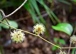 | The globose inflorescences of Xylosma congesta on a peduncle. | |