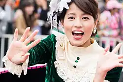 She graduated from Kwansei Gakuin University after studying in the Faculty of Sociology. She belonged to the cheerleading club while in high school.[5] On August 9, 2010, she was elected the first Kobe Wedding Queen.[6] She also won the Grand Prix of Miss Campus of Kwansei Gakuin in 2011.[7] From 2012 to 2013, she was a news reporter for Ohayo Asahi Doyobi desu (Good morning Asahi, it is Saturday) on Asahi Broadcasting while she was a university student.