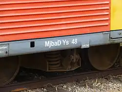 The Y-type DMUs consist of motor cars (Ym, Danish: motorvogn), intermediate trailer cars (Yp, mellemvogn), and control cars (Ys, styrevogn).[1] Configurations range from two to seven cars, with up to five trailers between two cab-equipped cars (at least one motor car). Common setups include two-car (Ym+Ys) and three-car (Ym+Yp+Ys) units.[1][3]
