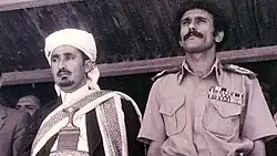After Hamdi was assassinated, power was taken by another officer: Ahmad al-Ghashmi (He was also suspected of involvement in Hamdi's assassination[27]). Ghashmi was a conservative, unlike his predecessor, and advocated rolling back Hamdi reforms. He also was known for his closeness to Saudi Arabia (he once called for unity with Saudi Arabia[28]) and opposed Hamdi's attempts to reduce Saudi influence in Yemen.[29] He issued a decree on February 6, 1978, which provided for the establishment of a Constituent People's Assembly (which is replaced Parliament[30]), in which the influence of tribes dominated. On April 22, 1978, the Constituent People's Assembly voted to dissolve the MCC and appoint Ghashmi as president.[29] In May–June 1978, a uprising began against Ghashmi near the PDRY border, led by leftist major Ali Abd Aalim, one of the members of the disbanded MCC, which is successfully crackdown: 50 people were killed as a result of the uprising. After the uprising was suppressed, Aalim fled to Aden and joined the leftist NDF forces.[29][22] Not much is known about Ghashmi's presidency. However, he did not hold on to power for long: 8 months after coming to power, he was also assassinated on June 24, 1978.
