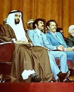 Ali Abdullah Saleh (right) next to Abdullah al-Ahmar (left), circa 1980