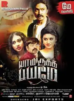 Yaamirukka Bayamey (transl. Always fear, when I am here) is a 2014 Indian Tamil-language horror comedy film written and directed by debutant Deekay and produced by Elred Kumar.[2][3] The cast includes Kreshna, Oviya, Rupa Manjari (in her penultimate appearance), Karunakaran, and Anaswara Kumar.[4] 15 technicians were introduced in the film,[5] which started shooting in Nainital in October.[6] Previously titled as Illa Aanalum Irukku,[2] the film released on 9 May 2014 [7] and received positive reviews.[8] The film was later remade into Kannada as Namo Boothatma and in Telugu as Next Nuvve. Yaamirukka Bayamey is based on the 1998 Korean film The Quiet Family.[9][10][11][12]