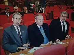 From left to right Khanhuseyn Kazimli (deputy), Yagub Ahmadov, Fikret Sadigov (head of Azeri Chemistry State Company).