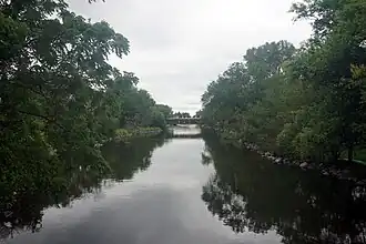 The Yahara River (/jəˈhærə/) is a tributary of the Rock River in southern Wisconsin. It is about 62 miles (100 km) long[3] (including the distance across intervening lakes), and drains an area of 536 square miles (1,390 km2).[4] Via the Rock River, it is part of the watershed of the Mississippi River. The Yahara River links the lakes around which the city of Madison was built.