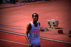 He returned to Japan and began to take on longer distances, recording the third best time on his leg of the New Year Ekiden and beat Josephat Ndambiri to win the 10,000 m at the Hyogo Relays.[8][9] A steeplechase win in 8:17.12 at a meet in Abashiri was enough to earn him a chance to represent his country at the 2009 World Championships in Athletics. Roba Gary had beaten his national record in the month before the event but Jarso finished ahead of him again on the global stage, pipping him to fifth place with a new personal best run of 8:12.13 minutes.[10] Upon returning to his training camp in Japan, he ran a 10,000 m best of 27:30.08 – a mark which ranked him in the top twenty runners over the distance that season.[11]