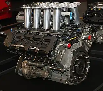 The Yamaha OX77 is a naturally aspirated gasoline-powered 3.0 L (180 cu in) V8 racing engine, developed and built by Yamaha for Formula 3000, specifically the Japanese Formula 3000 Championship, between 1987 and 1988. It is derived from the Cosworth DFV engine,[2] but uses 5 valves per cylinder instead of the DFV's 4.[3]