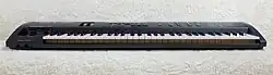 The V50 keyboard consists of 61 keys, covering 5 octaves. It supports both velocity sensitivity and channel aftertouch. The MIDI transmit channel of the keyboard is configurable. Wheels for pitch bend and modulation control are provided on the left side of the keys.