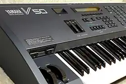 The Yamaha V50 is a hybrid music workstation introduced in 1989. It combines a sequencer, rhythm machine, an FM synthesis-based sound module and a MIDI keyboard.