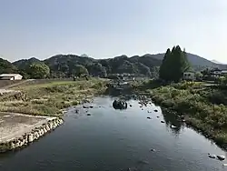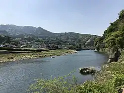The Yamakuni River arises on the slopes of the sacred Mount Hiko on the border of Oita and Fukuoka prefectures, flowing towards the sea through the Yabakei and Nakatsu plains, and empties into the Seto Inland Sea.[1] Tributaries include the Yamaoi River, Atoda River and Yamautsuri River.