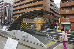 An opened emergency exit from the tunnel, located in the median of Yamate Street.