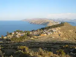 ![]() View from the Isla del Sol to the Yampupata Península in the background and Chelleca island on the left | |