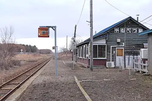 Yamubetsu Station (止別駅, Yamubetsu-eki) is a railway station on the Senmō Main Line in Koshimizu, Hokkaido, Japan, operated by the Hokkaido Railway Company (JR Hokkaido).