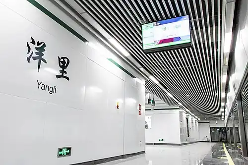 Yangli Station (Chinese: 洋里站; pinyin: Yánglǐ zhàn; Fuzhounese: [yoŋ˧ lie˧]) is a metro station of Line 2 of the Fuzhou Metro. It is the current eastern terminus on the line and located near Liuyi Garden and Yangli Xinyuan, Jin'an District, Fuzhou, Fujian, China. It started operation on April 26, 2019.[1]