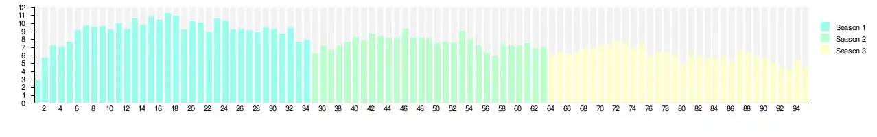 | 87 | March 17, 2024 | 5.11 | 6.68 | 1st | 6.25 | 1st | |
