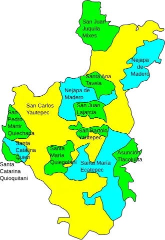 ![]() Oaxaca regions and districts: Sierra Sur towards the southwest | |