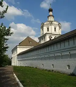 The Old Believers, a persecuted religious minority, were allowed to practice their beliefs in two isolated communities east of the Yauza (Rogozhskoye Cemetery and Preobrazhenskoye Cemetery)[25] beginning in the 1770s. Edinoverie, a moderate branch of Old Believers in communion with the official Orthodox Church, built a large church complex on a high eastern bank of Yauza in Lefortovo (55°45′27″N 37°40′49″E / 55.75750°N 37.68028°E).