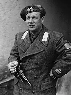 General Vito Miceli, chief of the SIOS military intelligence agency in 1969, and head of the SID from 1970 to 1974, was arrested in 1974 on charges of "conspiracy against the state".[17] Following his arrest, the Italian secret services were reorganized by a 24 October 1977 law in an attempt to reassert civilian control over the intelligence agencies. The SID was divided into the current SISMI, the SISDE, and the CESIS, which was to directly coordinate with the Prime Minister of Italy. An Italian Parliamentary Committee on Secret services control (Copaco) was created at the same time.[71] Miceli was acquitted in 1978.[17]
