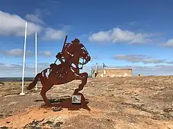 A Light Horse Memorial silhouette statue was placed on the rock to commemorate the Anzac centenary and is where Anzac Day services are held at dawn to honour those members of the Light Horse Brigade from the local area who didn’t return from the First World War.[1] The memorial statue was designed by Brendan Kalnins.