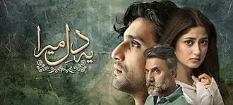 Yeh Dil Mera (Urdu: یہ دل میرا, lit. 'This heart of mine') is a 2019 Pakistani romantic thriller television series that premiered on Hum TV on 30 October 2019.[2][3] It is directed by Aehsun Talish, written by Farhat Ishtiaq and produced by Momina Duraid under their banner MD Productions. The serial stars Ahad Raza Mir, Sajal Ali and Adnan Siddiqui in lead roles.[4][5][6][7]