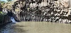 Most of the area are covered by basalt strata. In many places there are hexagonal basalt columns. The most impressive display of them is in the Hexagon Pool on the Meshushim Stream (Nahal Meshushim, "Hexagons Stream"), although notable hexagonal formations exist by the Zavitan Stream (Nahal Zavitan) and the Ayit Waterfall.[2]