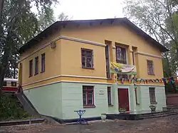 The current main station is made of concrete and has two floors. On the ground floor, there is an office and waiting room for passengers. On the upper floor there is a hall and the offices of the manager and deputy manager of the children's railway and a ticket office. Behind the station there is a meeting point for young railway workers and a depot with additional rooms.