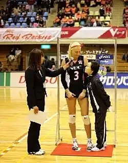 In the 2012–13 season, she transferred to NEC Red Rockets in Japan after signing a one-year contract.[1][2][3] She became so the first ever Turkish women's volleyball player in Japan. She enjoyed champion title in the Japan's V.League after winning 23 of the 28 matches. Named MVP in many games, she contributed to her team's champion title.