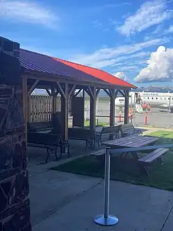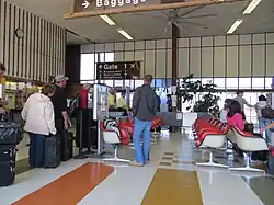 As of 2023, construction of a new airport terminal is in progress.[16] A completion date of early to mid-2025 has been cited.[17] Apart from a needed expansion, a rebuild in the area due to flooding was necessary. In addition, as the airport is of 1960s vintage, the gate area and security are not up to modern TSA standards. The current airport has no air conditioning and rest rooms are not available after security clearance.[18][19] The new terminal will more than double the area of the current airport. The current waiting area is cramped, and the overflow area is outside and open to the elements.