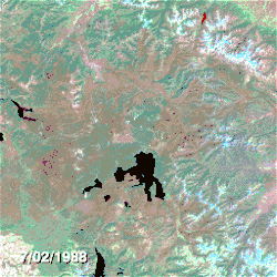 ![]() Fires approach the Old Faithful Complex on September 7, 1988 | |