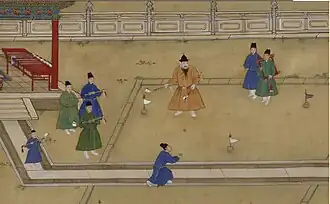 Yesa robe (Chinese: 曳撒袍; pinyin: Yèsāpáo), also known simply referred as Yesa (Chinese: 曳撒), Yisan (Chinese: 曳撒), or Yisa (Chinese: 一撒), is an ancient type of Chinese clothing worn during the Ming dynasty.[1][2] It originated in the Ming dynasty but was influenced from clothing of the Yuan dynasty.[1] It is sometimes described as being a sinicized version of the Mongol's jisün[3] and could only be found in China.[4] Yesa was a regular clothing in the Ming dynasty;[3] it was initially worn in the palace and by the wealthy, and it later spread to the commoners.[1]