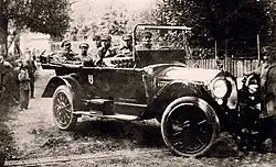 In January 1919, at a conference in Kyiv consisting of pro-independence parties, the Riflemen delegation put forward a proposal to reform the government into a temporary triumvirate military dictatorship consisting of Petliura, Konovalets, and Melnyk in order to better meet the demands of the state-building process though this was rejected by the other parties present, including Petliura and the Directorate.[13]:65-6 The dissolution of the Austro-Hungarian Empire the preceding November had seen the Polish-Ukrainian War break out for control of Western Ukraine, with the Ukrainian People's Army (UNA) caught in a Death Triangle the following autumn between the Bolsheviks, the Whites, and the Poles, with no supply lines to the anti-Bolshevik Entente powers. On December 6, 1919, as a result of a meeting of UPR military leaders, Konovalets demobilised his military formations with UNA soldiers given the choice of departing south or participating in the guerilla-fought First Winter Campaign.[11][10] Later that month he was taken prisoner and interned in a Polish prisoner-of-war camp in Lutsk.[10][14][5] Konovalets was released in the spring of 1920 due to the Polish-Ukrainian alliance and travelled to Vienna, hoping to set up a military unit to aid the Kyiv offensive though this was hampered by tensions with members of the Ukrainian Galician Army who were aggrieved at the Treaty of Warsaw that had ceded most of Western Ukraine to Poland in return for Polish recognition of Petliura's UPR.[14] With the subsequent collapse of the Polish-Ukrainian lines he moved to Czechoslovakia.[14]