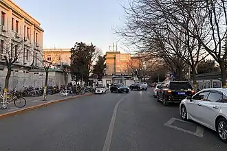 ![]() Buildings within Yidongyuan rise above the perimeter wall at left. The camera is faced north, positioned just past the main entrance. | |