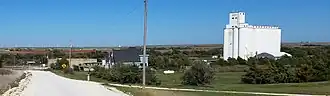 The original settler name for the location was Hog Back,[4][5] with a railway station first established there with that name in 1881.[6] This station was later moved[7] to Hog Back, Kansas. Hog Back was the local name for the high limestone and chalk ridge that runs from just west of old Fort Hays to Ellis. These bluffs are the local outcrop of the Fort Hays Limestone.[8] Established in 1906[9] by business partners Erasmus Haworth, the first state geologist of Kansas,[10] and I. M. Yost, leading businessman and miller of Hays,[11] Yocemento is one of the several communities around the outskirts of the High Plains that were founded to use Fort Hays Limestone to manufacture Portland cement.[12][13][14][15]