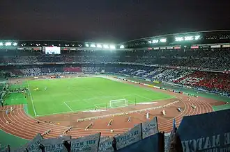 The Yokohama derby is known as one of the most dangerous derby matches in Japan. On the 11 August 2007 derby, the Marinos' ultras were arrested after lynching the FC's supporters.[8] On the 10 October 2012 derby, the FC's ultras posted expletive choreography, resulting in a permanent ban from all of FC's matches.[9] On the 11 July 2018 derby, the FC's ultras refused to hold a moment of silence for the victims of the 2018 Japan floods and continued to sing chants.[10] On the 5 July 2025 derby, the Marinos' ultras exploded and threw pyrotechnics at the FC's supporters outside the stadium, most of the Marinos' supporters were unable to get into the stands before the start of the match,[11] as a result 72 Marinos' supporters were permanently banned and 4 Marinos' ultra groups were disbanded.[12][13][14]